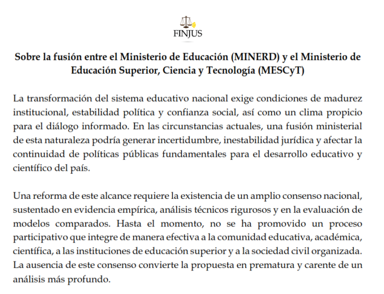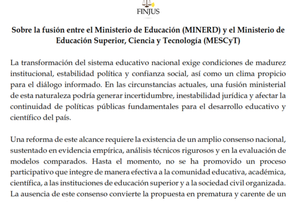 Sobre la fusión entre el Ministerio de Educación (MINERD) y el Ministerio de Educación Superior, Ciencia y Tecnología (MESCyT)