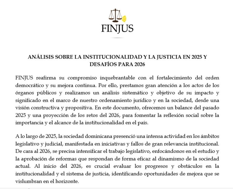 ANÁLISIS SOBRE LA INSTITUCIONALIDAD Y LA JUSTICIA EN 2025 Y DESAFÍOS PARA 2026 FINJUS reafirma su compromiso inquebrantable con el fortalecimiento del orden democrático y su mejora continua. Por ello, prestamos gran atención a los actos de los órganos públicos y realizamos un análisis sistemático y objetivo de su impacto y significado en el marco…